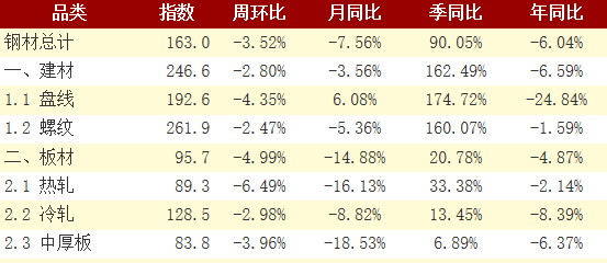 1. 全國鋼材社會庫存連續(xù)4周下降,建材庫存下降速度有所加快,板材庫存下降速度略有加快
